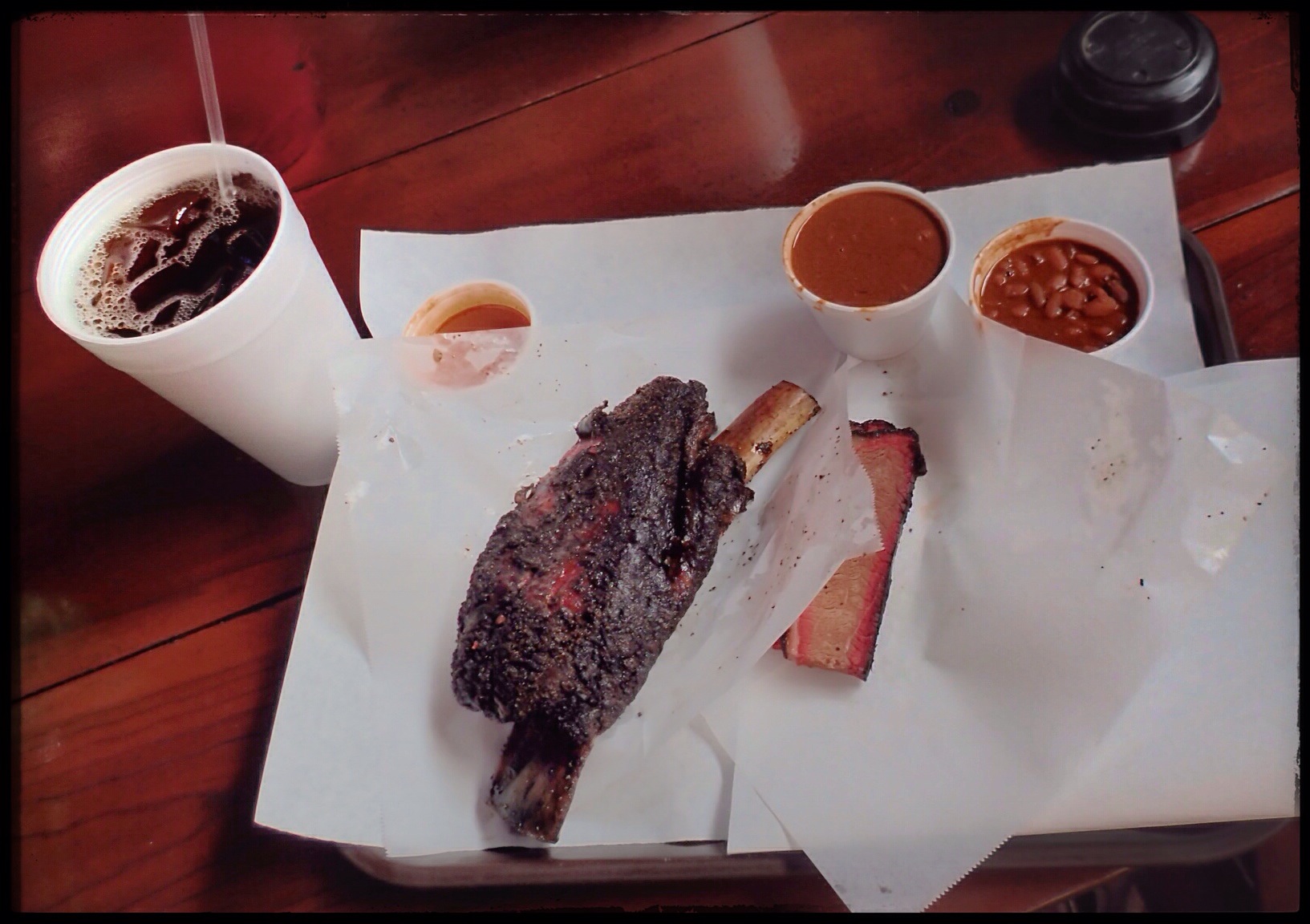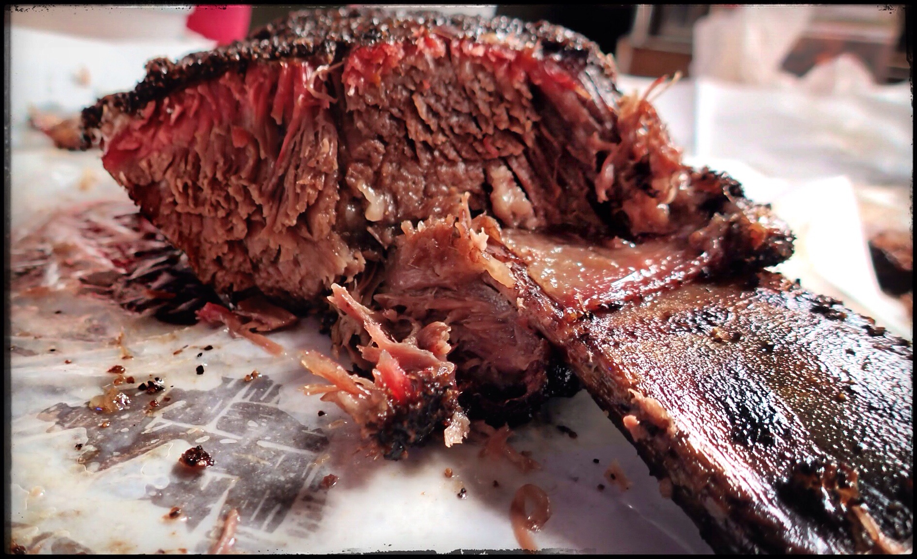 My first foray into Lockhart BBQ was back in the early 1990s. As a photography major at St Edward’s University in Austin, we’d occasionally trek to Lockhart for lunch and picture taking. Back then, I remember two choices: Kreuz and Black’s. The only differences between them (that I could remember) were that Black’s had plates, sauce, and silverware, and Kreuz had butcher paper, no sauce, and no silverware—but they had knives that were chained to the tables. I think we usually ended up at Black’s because of the whole silverware thing, but the knives-on-chains thing at Kreuz was always fun too.